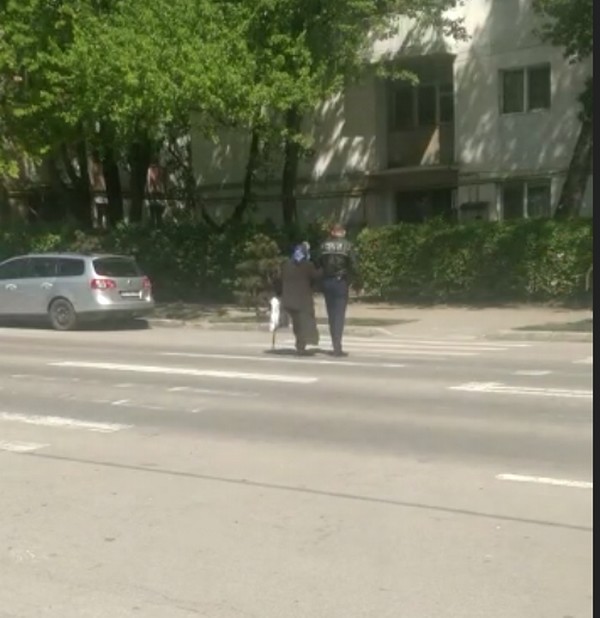 Polițistul Păscăreanu Dan, din cadrul Biroului de Ordine Publică, aflat in serviciu de patrulare pe strada Pacea, a observat-o și a coborât din autospeciala de poliție, oferindu-i brațul său, drept sprijin și astfel au traversat împreună strada.