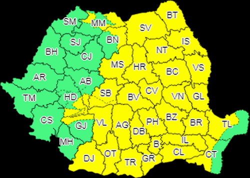 Meteorologii au emis, sâmbătă, două avertizari meteo, din care una de cod galen pentru județul Botoșani. Potrivit ANM,
