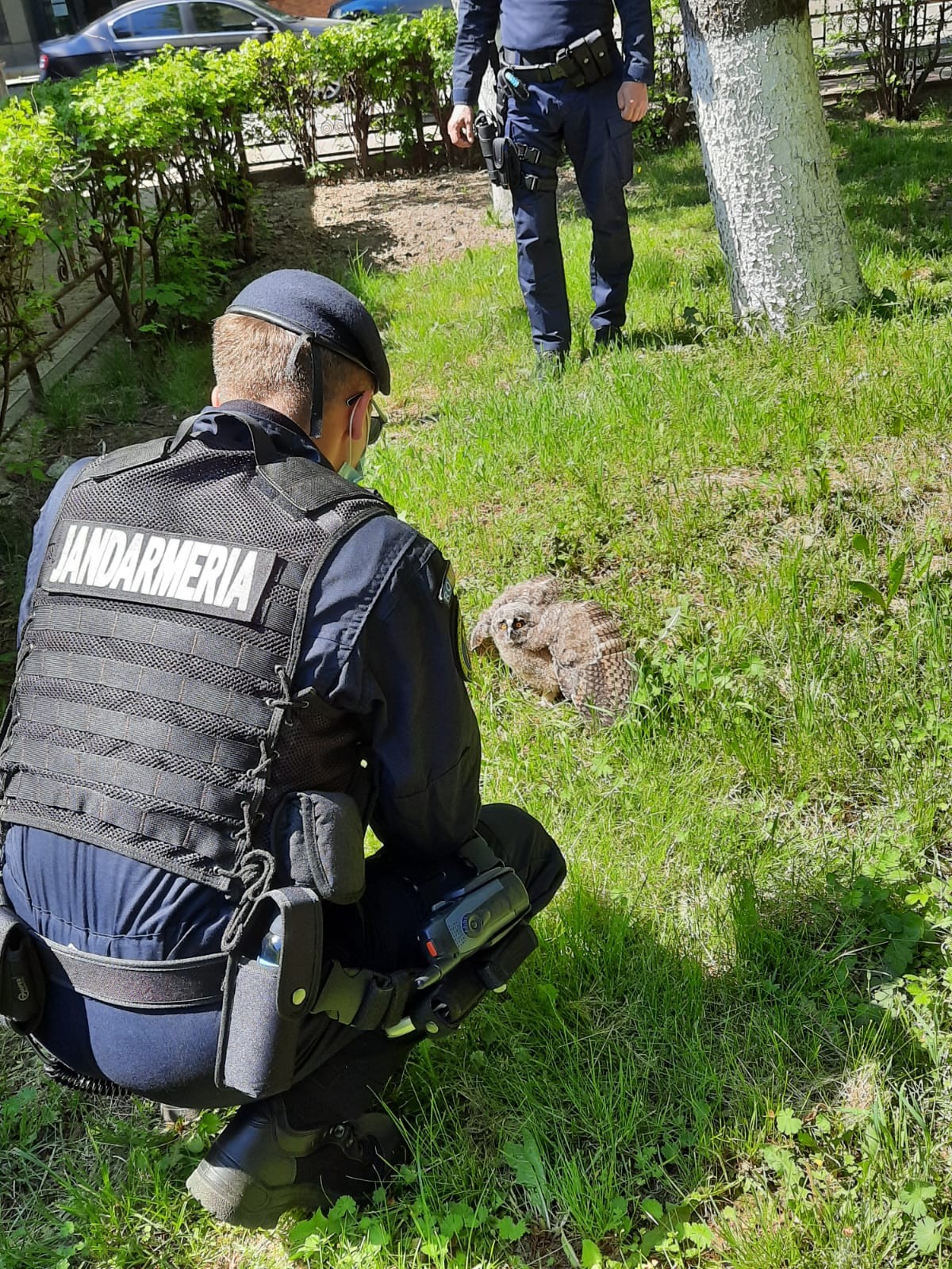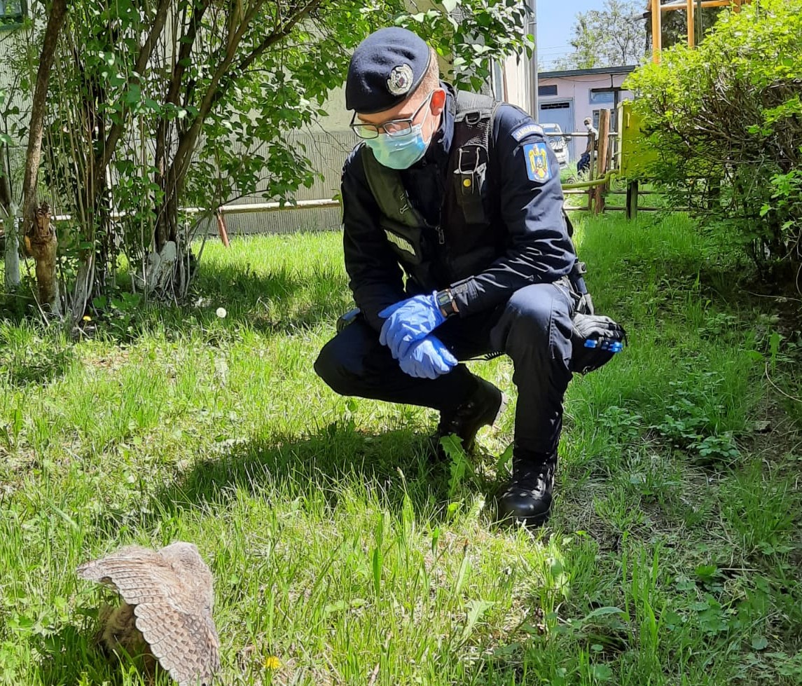 Duminică dimineață, jandarmii botoșăneni au fost ,,îngeri păzitori” pentru un pui de bufniță căzut din cuib.