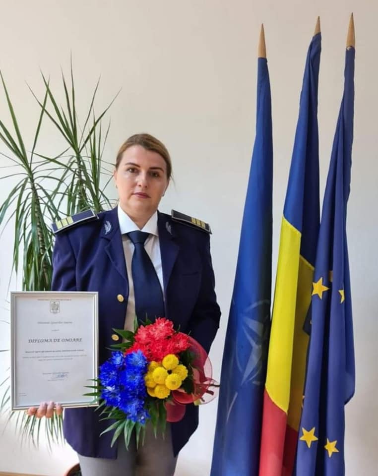 Polițista de frontieră Simona Elena Suhan a primit diploma de onoare din partea Ministerului Afacerilor Interne în semn de recunoaștere pentru spiritul civic si implicarea de care a dat dovada pe durata starii de urgenta si combatere Covid 19.