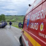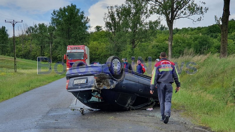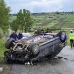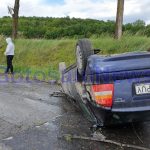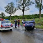 Un autoturism a ieșit de pe carosabil în urma unei depășiri. El a acroșat mașina pe care a depășit-o, apoi a lovit malul de pământ din partea dreaptă a drumului, iar apoi s-a răsturnat pe cupolă pe asfalt. Șoferul are 52 de ani, este polițist local și nu se afla sub influența băuturilor alcoolice.