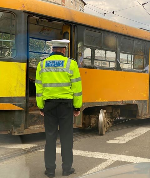 Reprezentanții Eltrans au intervenit pentru repunerea tramvaiului pe calea de rulare.