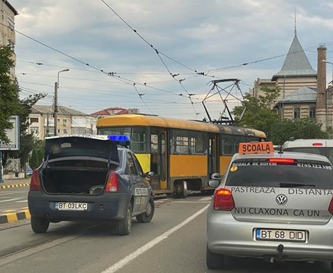 O nouă zi, aceleași probleme cu tramvaiele vechi de la Botoșani. Încă un tramvai a sărit de pe șine, vineri dimineață, în intersecția din zona Gării. Acesta circula pe ruta 102, iar la un moment dat a deraiat, spre nemulțumirea călătorilor, dar și a celorlalți participanți la trafic.