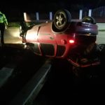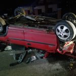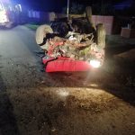 Autoturismul a intrat în două capuri de pod, apoi s-a răsturnat. Din fericire, șoferul a scăpat teafăr, dar mașina a fost puternic avariată.