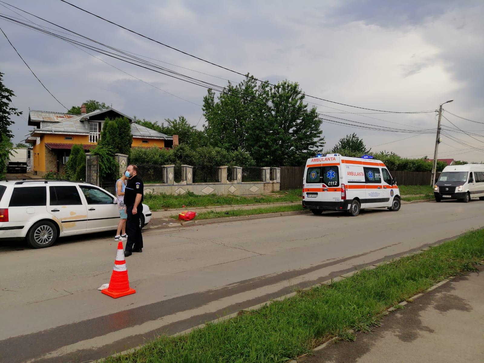 La fața locului au ajuns echipaje de la Ambulanță și Poliție, Victima a fost transportată la spital.