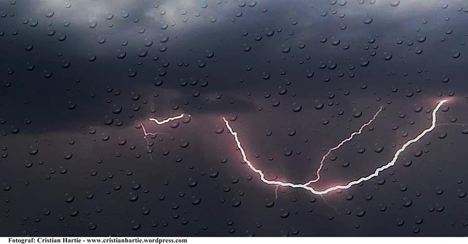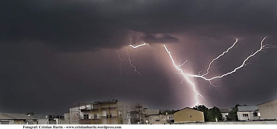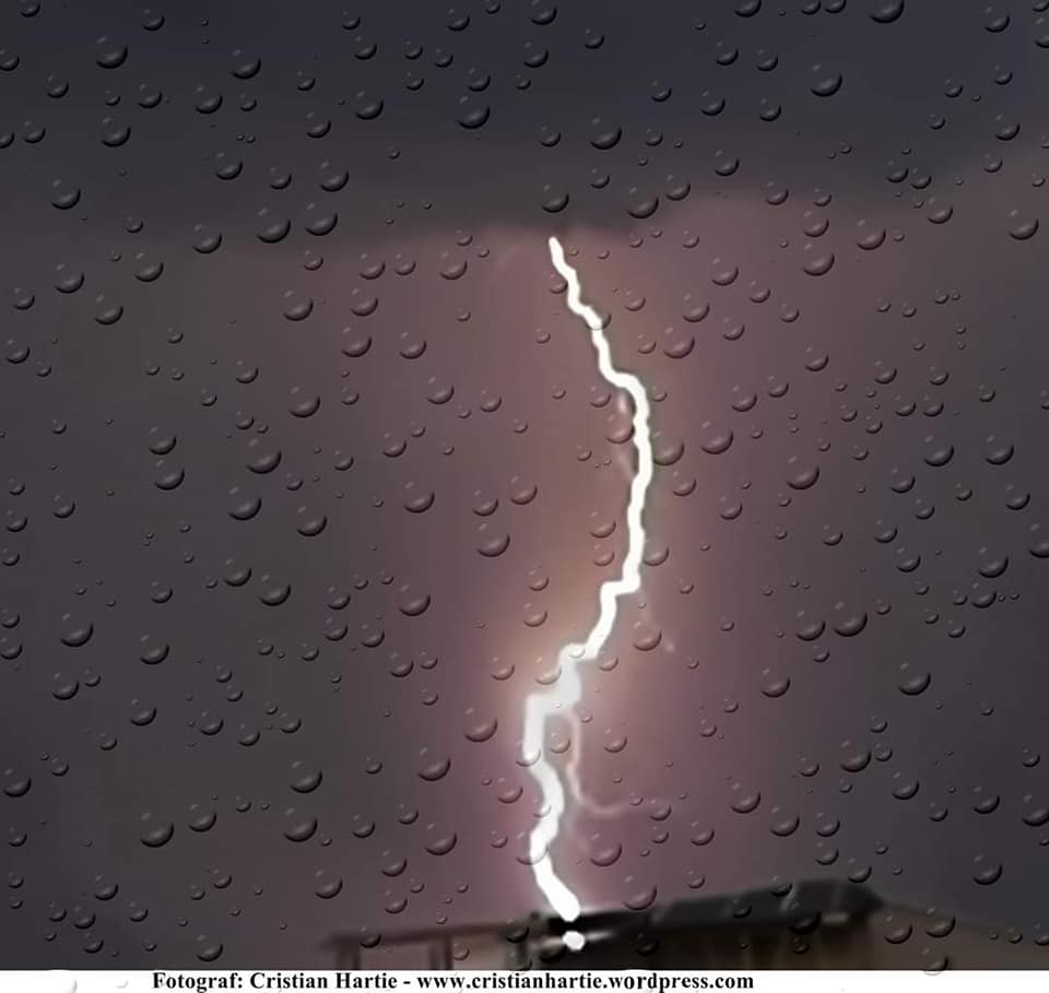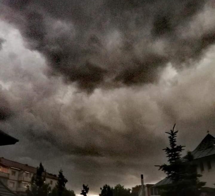 Norii negri amenințători au fost văzuți încă din cursul după-amiezii, iar spre seară s-a lăsat cu tunete și fulgere.