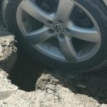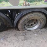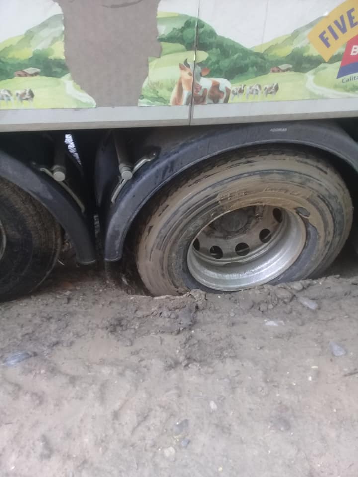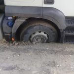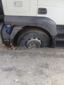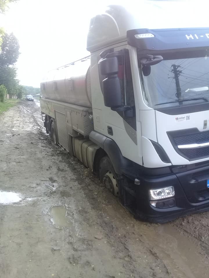 Mai multe mașini au rămas cu roțile blocate în drum, la Dângeni. Un șofer a publicat pe rețelele de socializare câteva fotografii cu autoturisme, dar și camioane cu roțile blocate în craterele din drum.