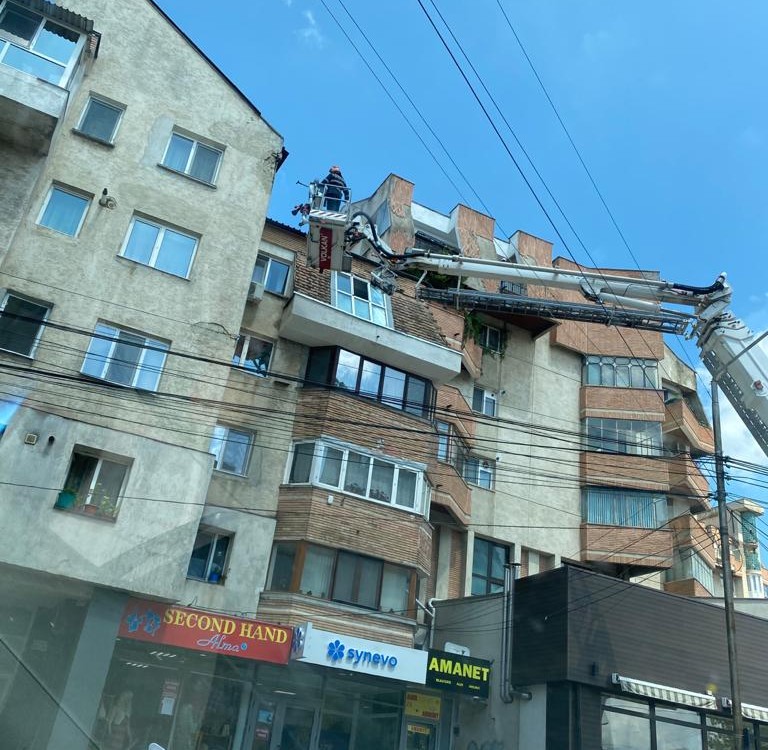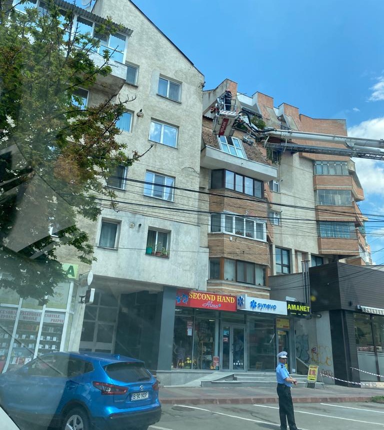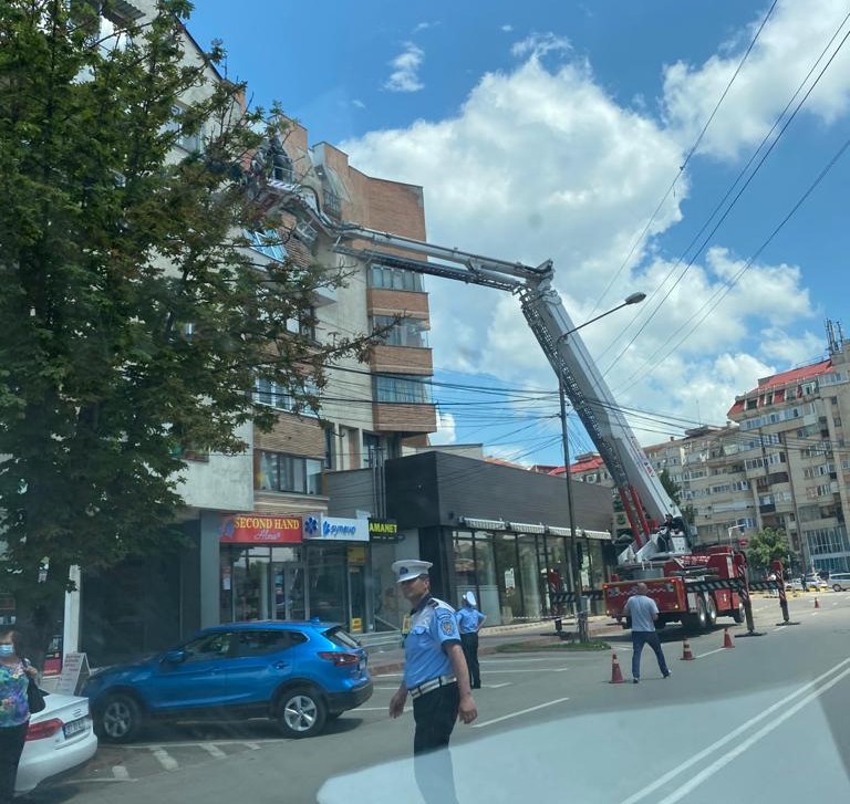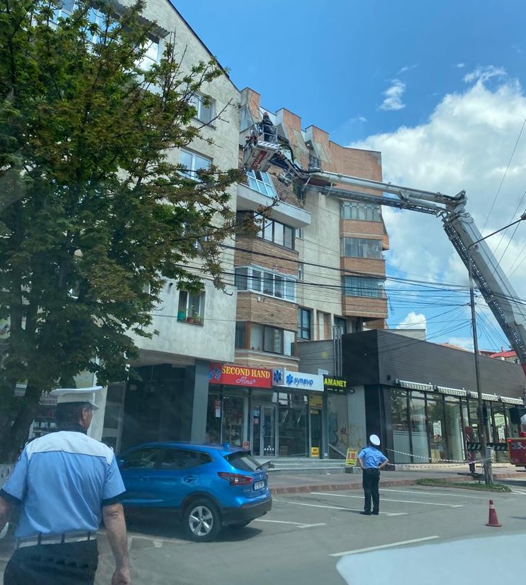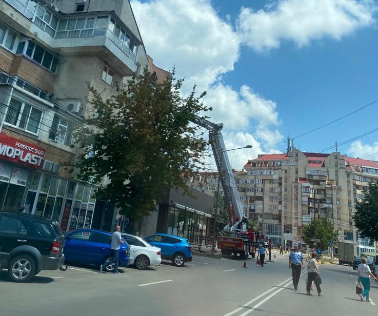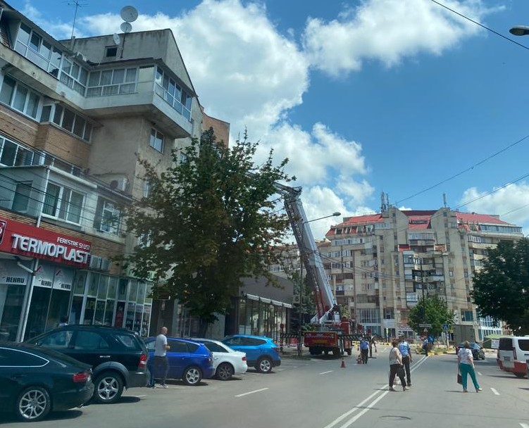 Pompierii au fost chemați, marți, să îndepărteze tencuiala de pe un bloc de pe strada Marchian din municipiul Botoșani. Și asta deoarece reprezenta un pericol pentru trecători.