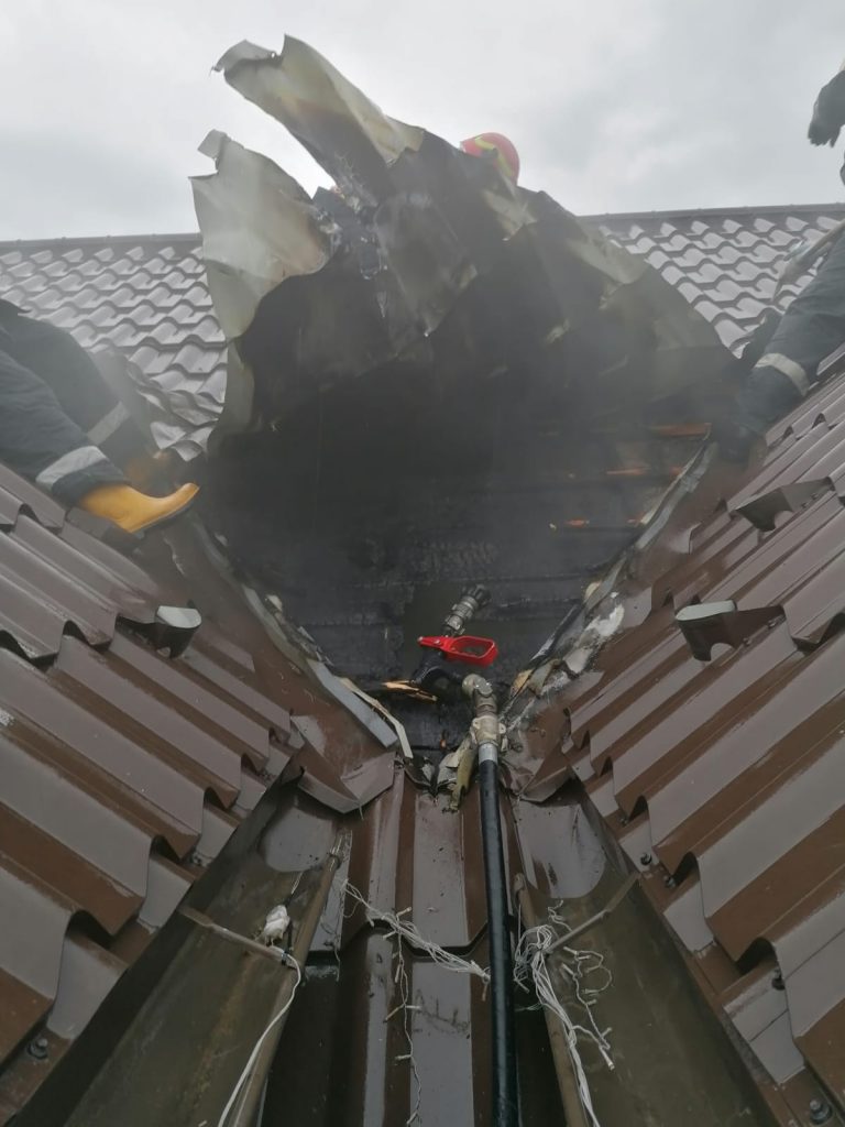Intervenția prompta a salvatorilor a împiedicat extinderea flăcărilor la întregul acoperiș sau la bunurile din interior.