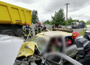Autoturismul a intrat pe sensul opus și a lovit un autocamion, al cărui șofer a suferit răni care au necesitat internarea în spital.