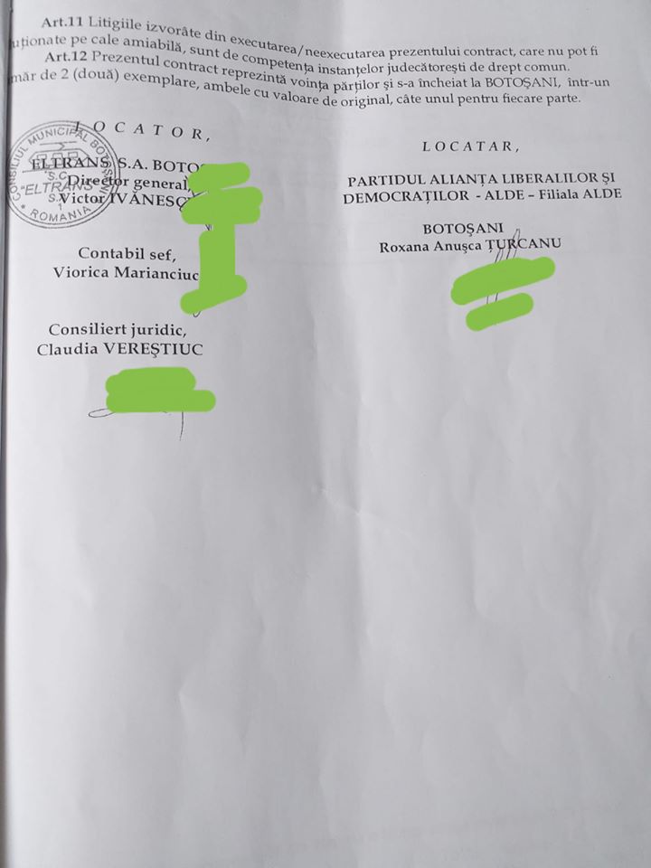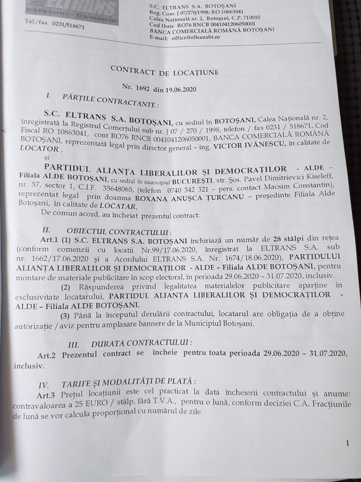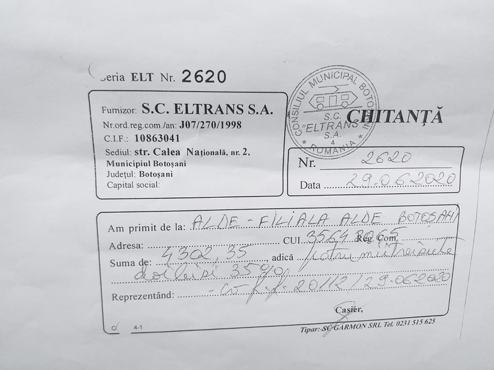 „Susținătorii USR Botoșani încep sa atace fără motiv și sa minta lumea cum ca as fi instalat bannere ILEGAL. Ma vad în postura de a răspunde acestui.....om și sa le demonstrez cetățenilor ca nu sunt genul de persoana care sa acționeze ilegal. Va atașez contractul cu ELTRANS, factura și chitanța cu plata efectuata pentru bannere. Nu încercați sa manipulați oamenii! Sincer credeam ca susținătorii USR vor aborda altfel campania electorala, nu asa cum fac alte partide de ani de zile. Sunt dezamăgit, dar era de așteptat! ALDE Botoșani deține toate autorizațiile necesare pentru aceasta campanie electorala!”, susține Lucian Borfotină.