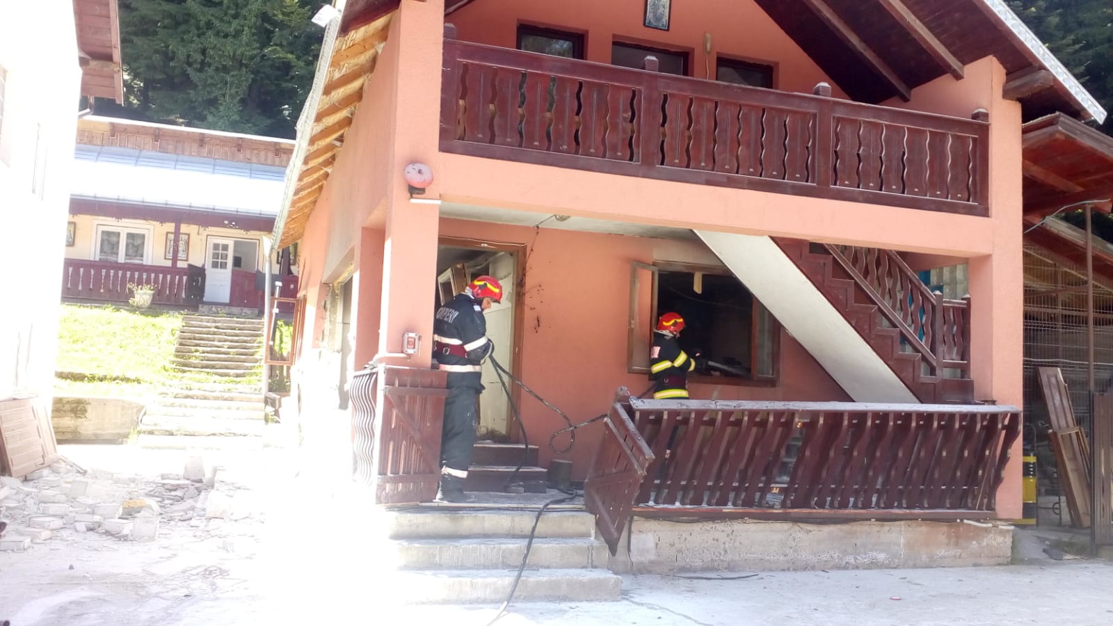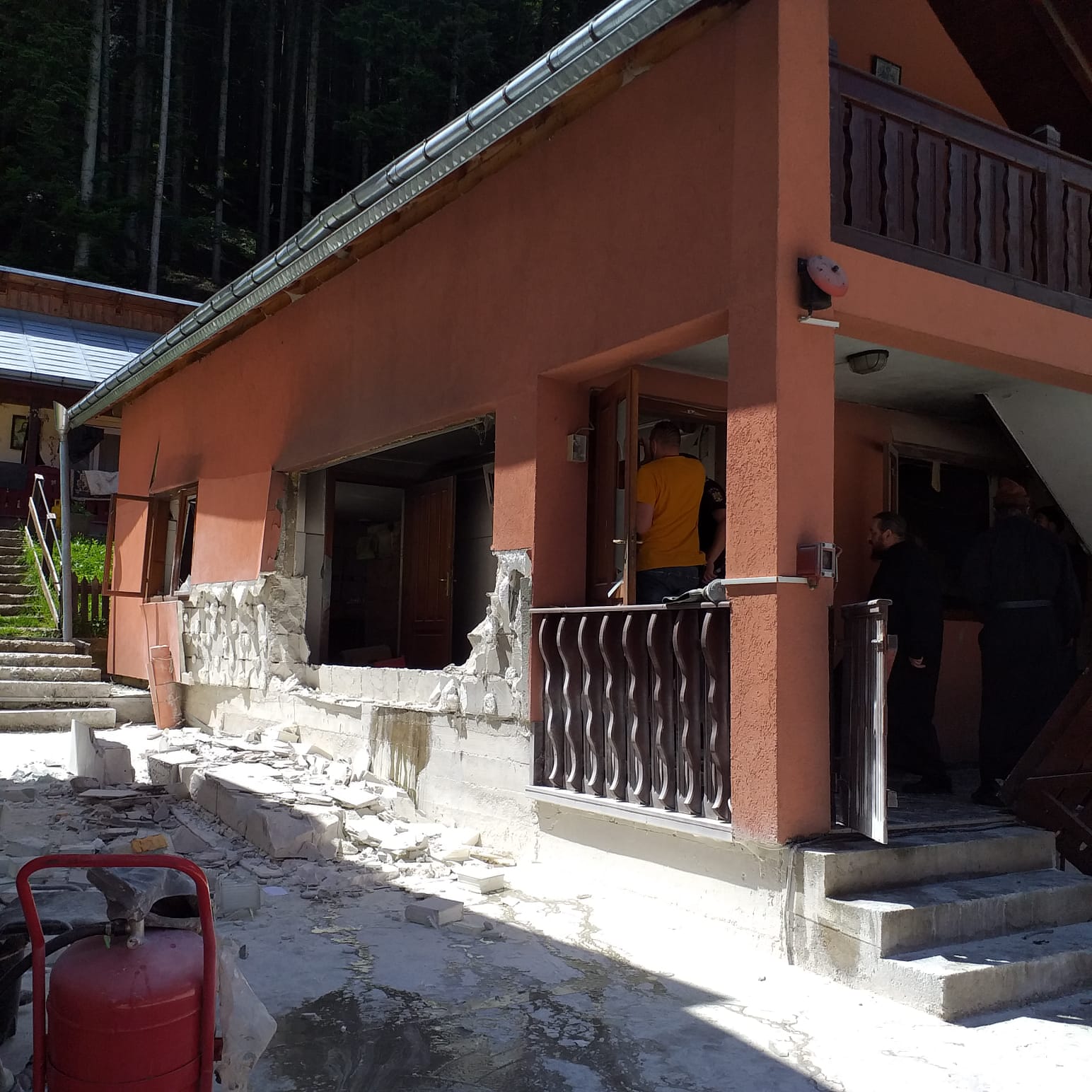 Suflul exploziei a afectat o camera tehnica si o bucatarie aflate in constructia anexa respectiva.