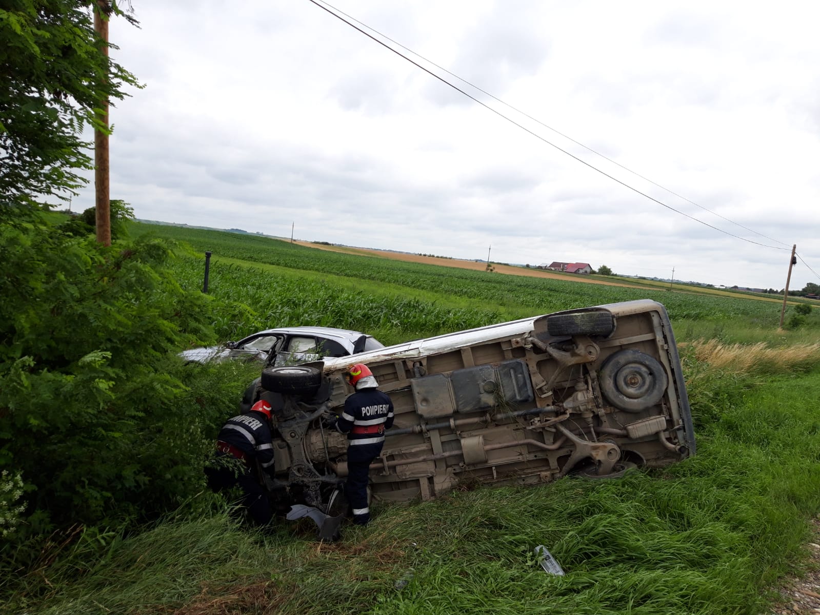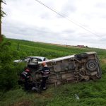 FOTO Accident cu trei victime! Două mașini s-au ciocnit, apoi una s-a răsturnat
