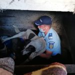 La rândul său, nici câinele nu putea să urce pe scara din lemn sprijinită la intrarea în beci pentru a pleca. Inițial, femeia apelase la un vecin, însă bărbatul nu a vrut ,, în ruptul capului” să intre în beci, speriat de dimensiunea câinelui.