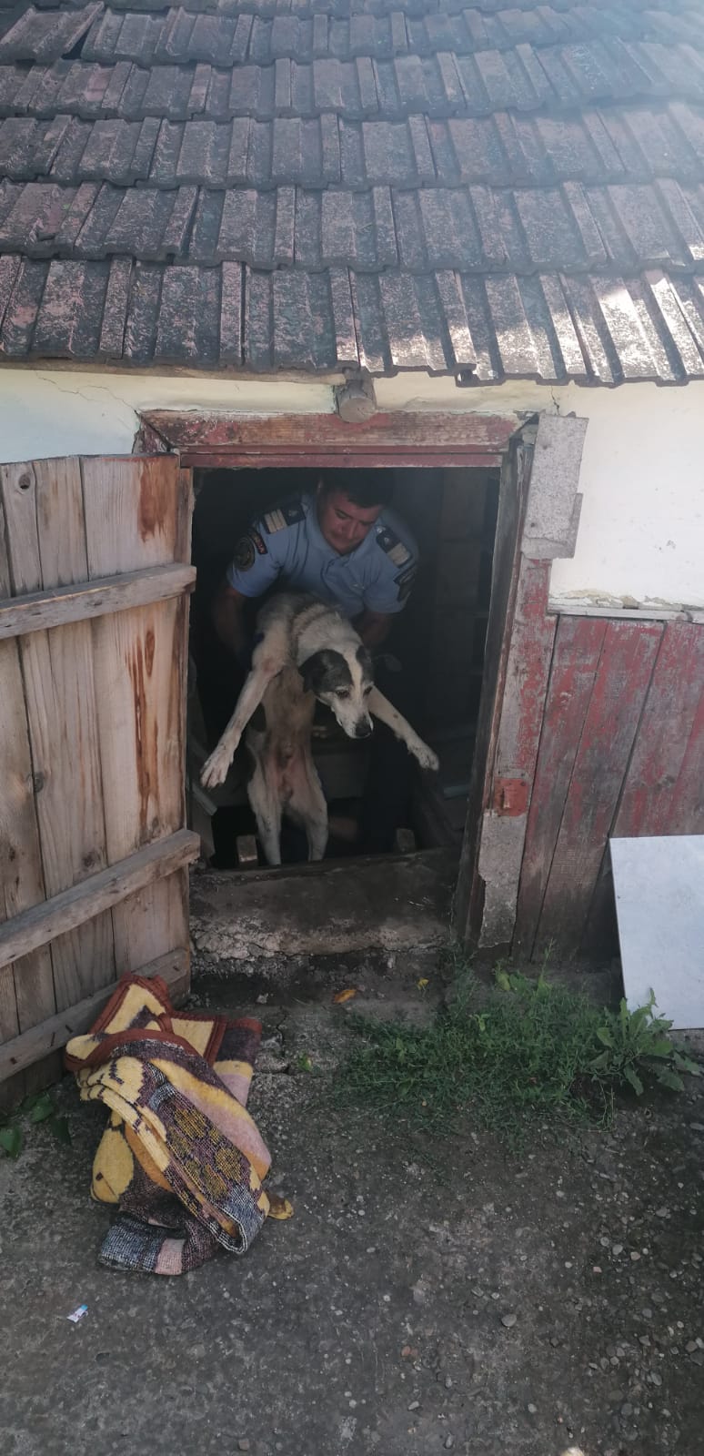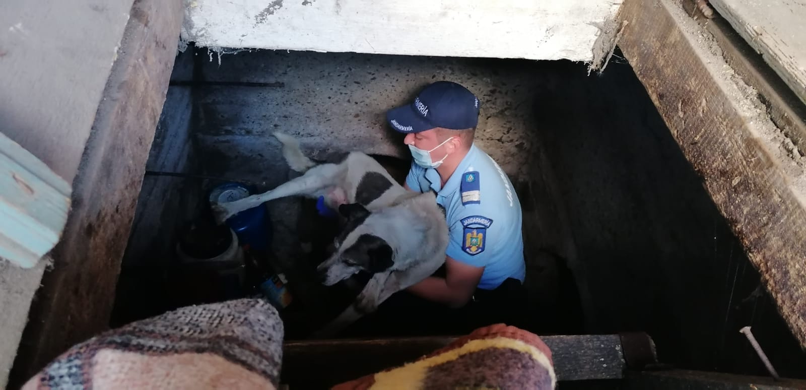 La rândul său, nici câinele nu putea să urce pe scara din lemn sprijinită la intrarea în beci pentru a pleca. Inițial, femeia apelase la un vecin, însă bărbatul nu a vrut ,, în ruptul capului” să intre în beci, speriat de dimensiunea câinelui.
