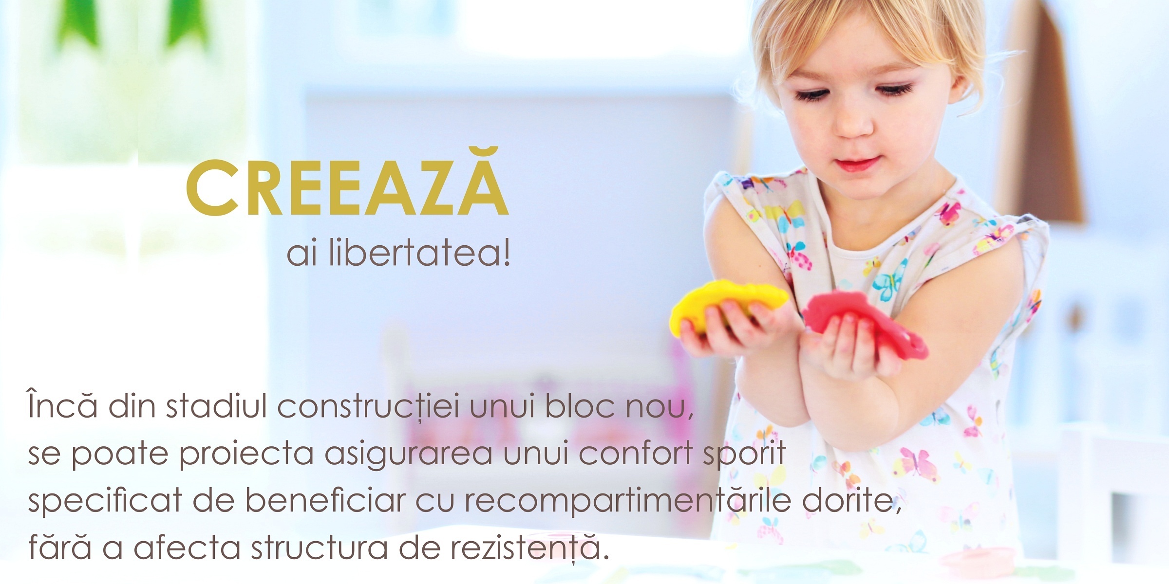 ”Dăm naștere unor construcții performante, pentru apartamente Made To Measure, cât mai confortabile, realizate cu materiale de ultimă generație, atât pentru elementele structurale cât și pentru izolarea fonică, termică, hidrofugă și protecția la foc, în condițiile respectării celor mai noi cerințe în construcții, a normativelor tehnice în vigoare.