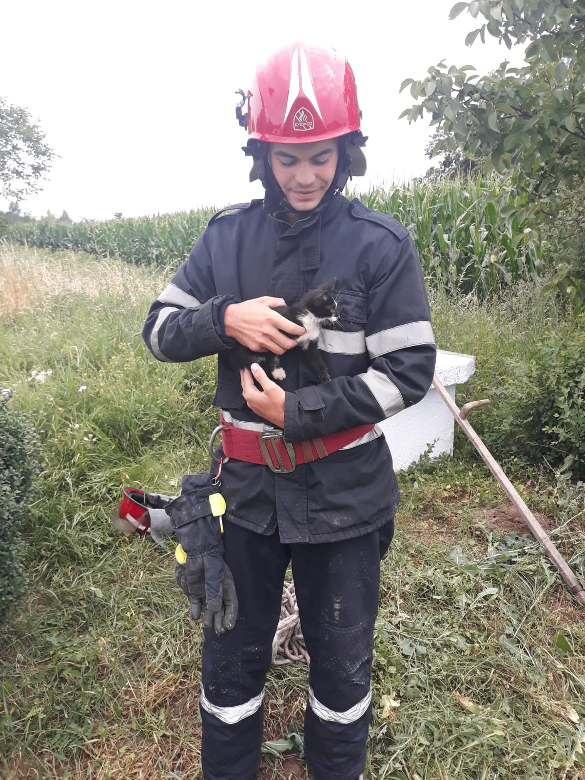 Joi dimineața, puțin înainte de ora 07.00, au fost solicitați sa intervină pentru a salva o pisicuta care a cazut intr o fântână adâncă de cca. 13 metri.