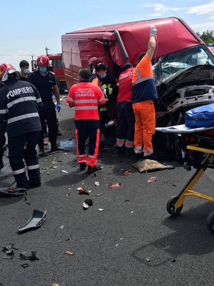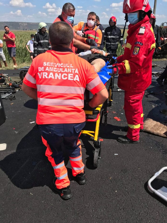 Paramedicii au acordat primul ajutor calificat la faţa locului victimelor rezultate din accident, iar ulterior au preluat un pacient cu traumatism la bazin, pe care l-au transportat la U.P.U. Focşani.