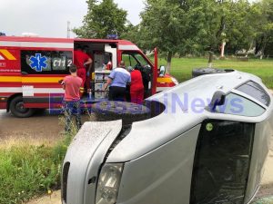 FOTO Accident rutier pe un drum național din Botoșani! O tânără s-a răsturnat cu mașina
