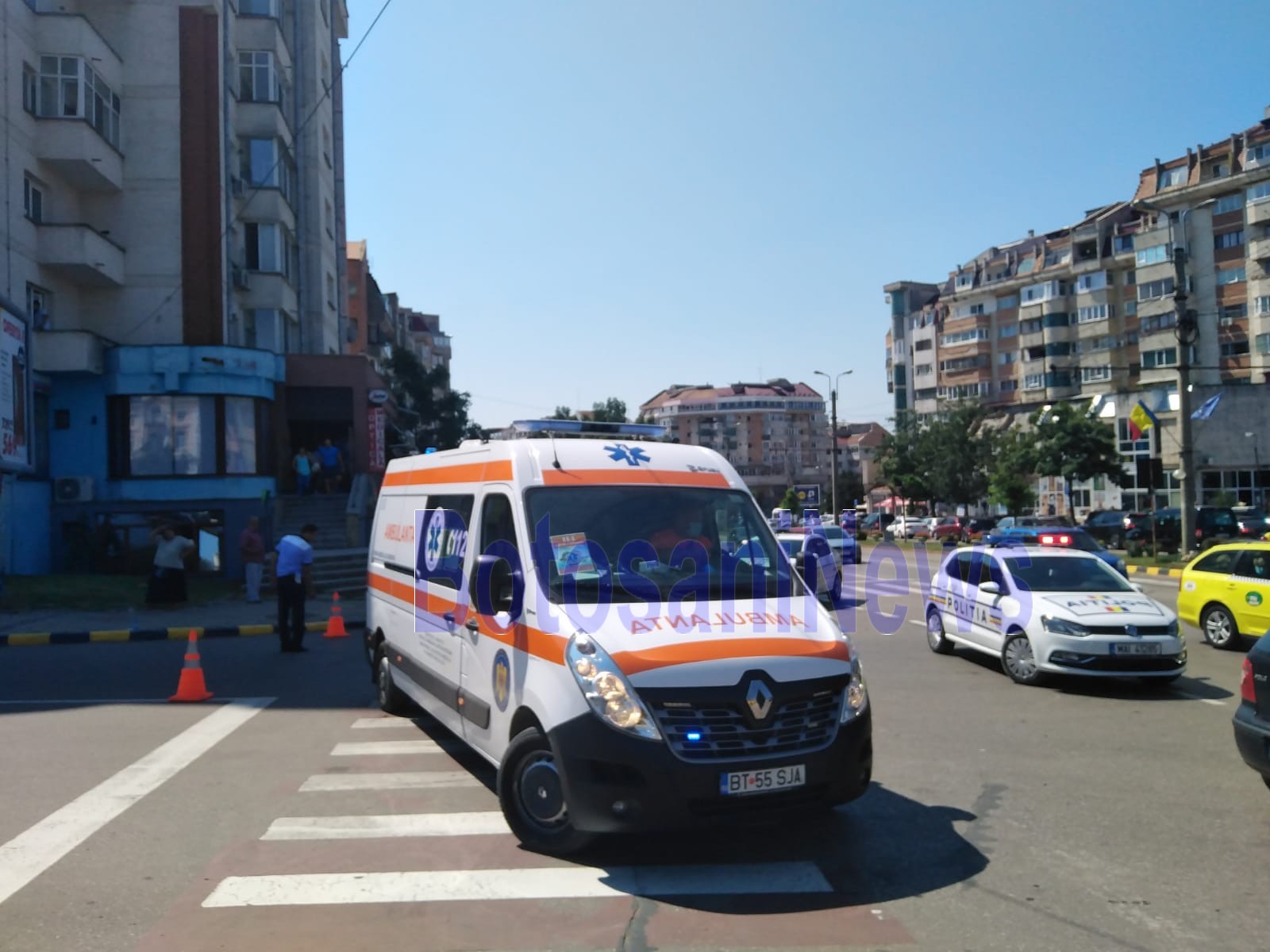 Accident cu victimă, marți la amiază, în municipiul Botoșani. O femeie de 72 de ani a fost lovită de o mașină, chiar pe trecerea de pietoni.