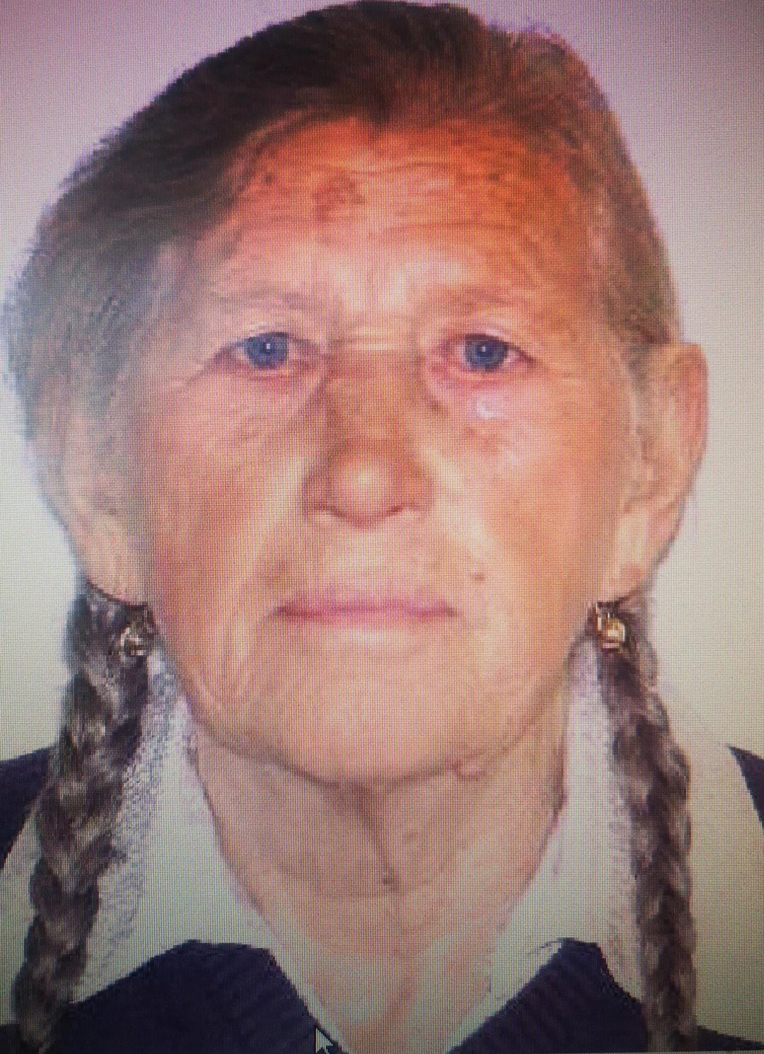 La momentul plecării din localitatea de domiciliu, aceasta era îmbrăcat cu: bluză cu măneci lungi de culoare închisă, pieptar alb, fustă lungă neagră si batic.