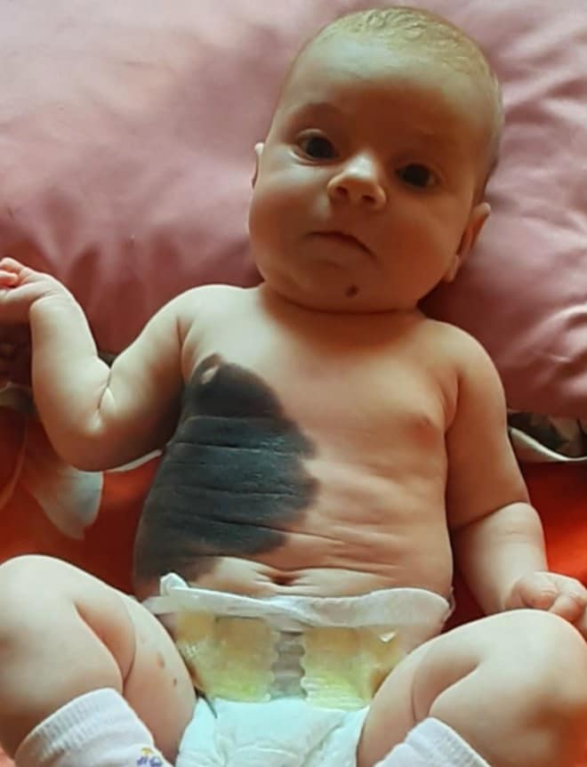Pe data de 31 iulie 2020 am reusit și am dus-o la o clinică Privată la Iași la Clinica Susanu Chirurgie Plastică care ne-a dat o sansa și a pus un nou diagnostic:nev gigant congenital care poate fi operat în clinica la Iași. Solutia cea mai bună fiind cea cu grefe de piele artificială, nevul fiind pe o suprafață de aproximativ 20% din suprafața corpului.  Cu grefe de piele naturală operatia fiind mai grea, deoarece Anastasia este micuța și nu are surplus de piele. Mai exista și varianta cu incizie serială dar doamna doctor a recomandat operație cu grefe de piele artificială”, spune Simona Elena, polițista de frontiera care a descoperit cazul bebelușului.