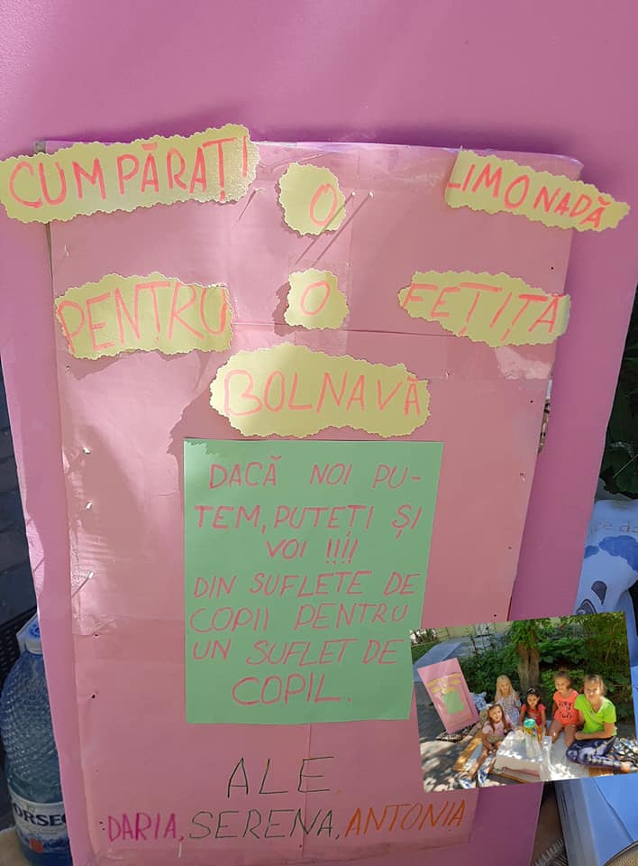 Cinci fetițe din Botoșani au dat o lecție de viața din care fiecare ar trebui să învețe ceva. Acestea au decis să vândă limonadă pentru a ajuta un copil bolnav. Ale, Daria, Serena, Antonia și Maria au vândut limonadă pentru a strânge bani pentru Anastasia, o fetiță in varsta de doar 3 luni, diagnosticată cu Nev congenital gigant, din satul Poiana, comuna Braesti.