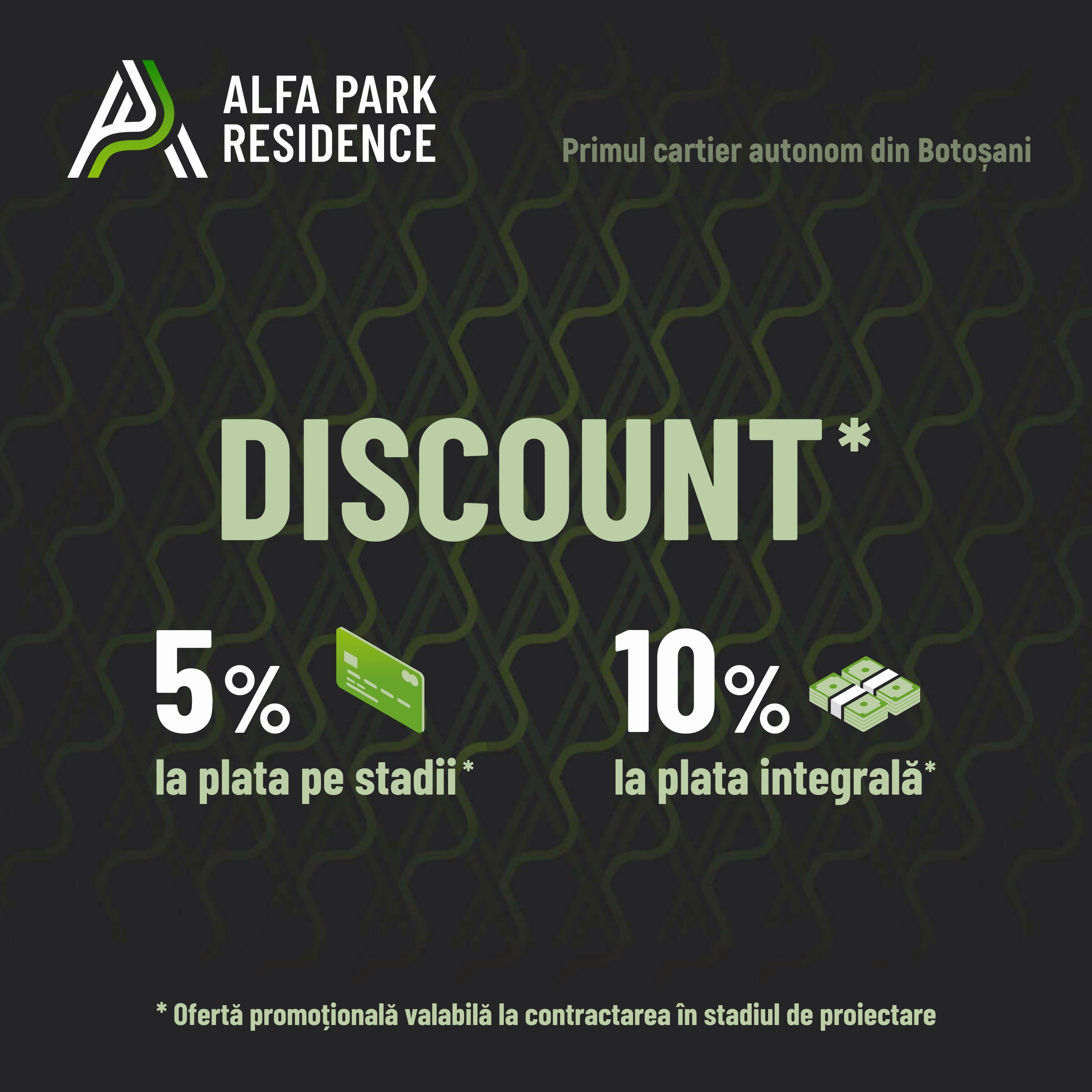 Astfel, vor fi răsplătiți pentru aceasta contribuție cu: un discount de 5% la prețul de achiziție, în condițiile plații eșalonate pe stadii, iar în cazul plații integrale, vor avea avantajul unei reduceri de 10% din prețul locuinței dorite, la contractarea în perioada de proiectare.”