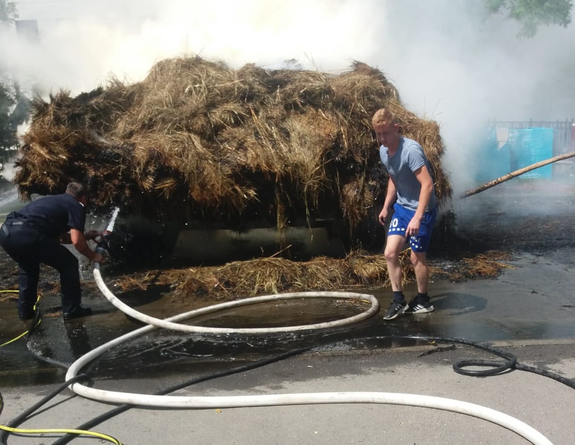 O cărută cu fân a fost incendiată, în mers, chiar în fața unei unități de pompieri.