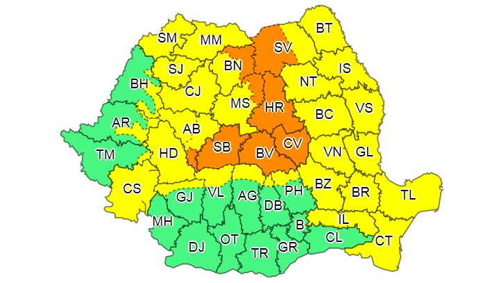 „În intervalul menționat, în nordul, centrul și estul țării, precum și la deal și la munte, vor fi perioade cu instabilitate atmosferică accentuată ce se va manifesta prin averse care vor avea și caracter torențial, descărcări electrice, intensificări de scurtă durată ale vântului și grindină. Cantitățile de apă vor depăși 20…25 l/mp și izolat 40…50 l/mp”, se precizează în avertizarea ANM.