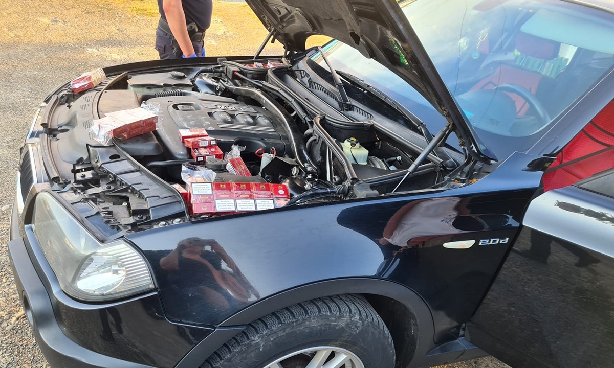 În urma verificărilor efectuate, polițiștii au descoperit, disimulate în partea superioară a compartimentului motor, 12.000 ţigarete (600 pachete de ţigări), pentru care şoferul nu deținea documente de proveniență.