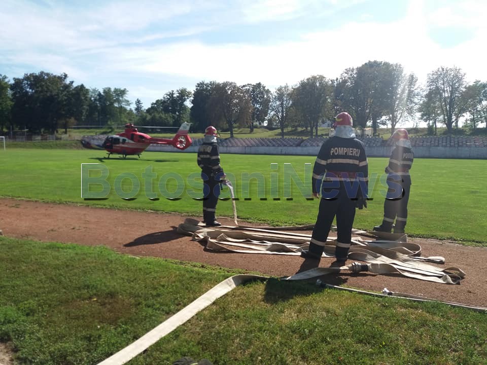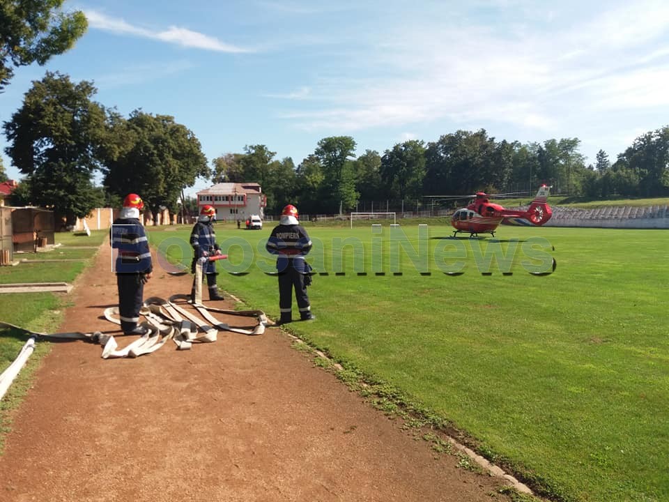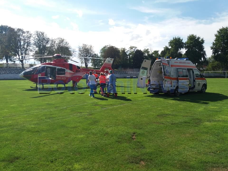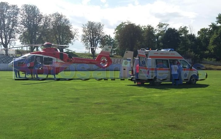 FOTO Elicopterul SMURD chemat de urgență la Botoșani! A preluat un bărbat în stare gravăDistribuie:WhatsAppTweetTelegramReddit 26 august 202026 august 2020 Elicopterul SMURD a fost chemat, miercuri, la Botoșani pentru a prelua un bărbat în stare foarte gravă. Acesta a aterizat pe stadionul municipal din Dorohoi. Cadrele au preluat un bărbat de 67 de ani, din Concești, cu fractură craniană. Distribuie:WhatsAppTweetTelegramReddit