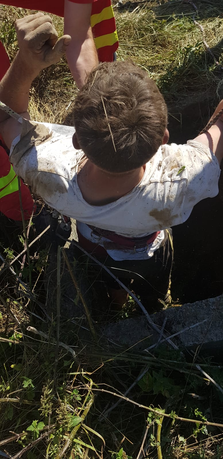Ulterior, atât omul, cât şi animalul, au fost aduși la suprafață, sănătoşi, fără probleme deosebite, care să necesite transportul la spital, respectiv la o clinică veterinară.