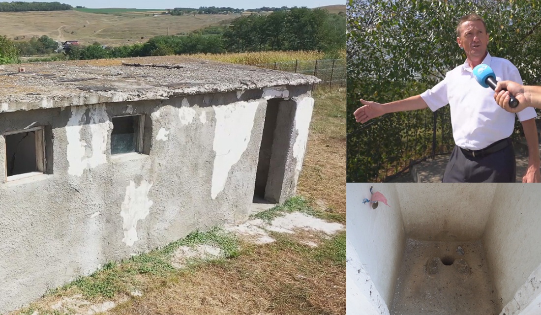 Îl invităm să ne arate toaleta din fundul curţii şcolii, o clădire în paragină, pe care copiii o vor folosi odată cu începerea anului şcolar. Construcţia, veche de 60 de ani, arată de parcă s-ar dărâma la un vânt mai puternic. În lateral, capacul din beton al fosei este dat la o parte. Pericolul este uriaş pentru copii, care ar putea cădea în mizerie. Viceprimarul nu pare preocupat de asta şi exclamă: „Eee, inca nu a inceput scoala!”