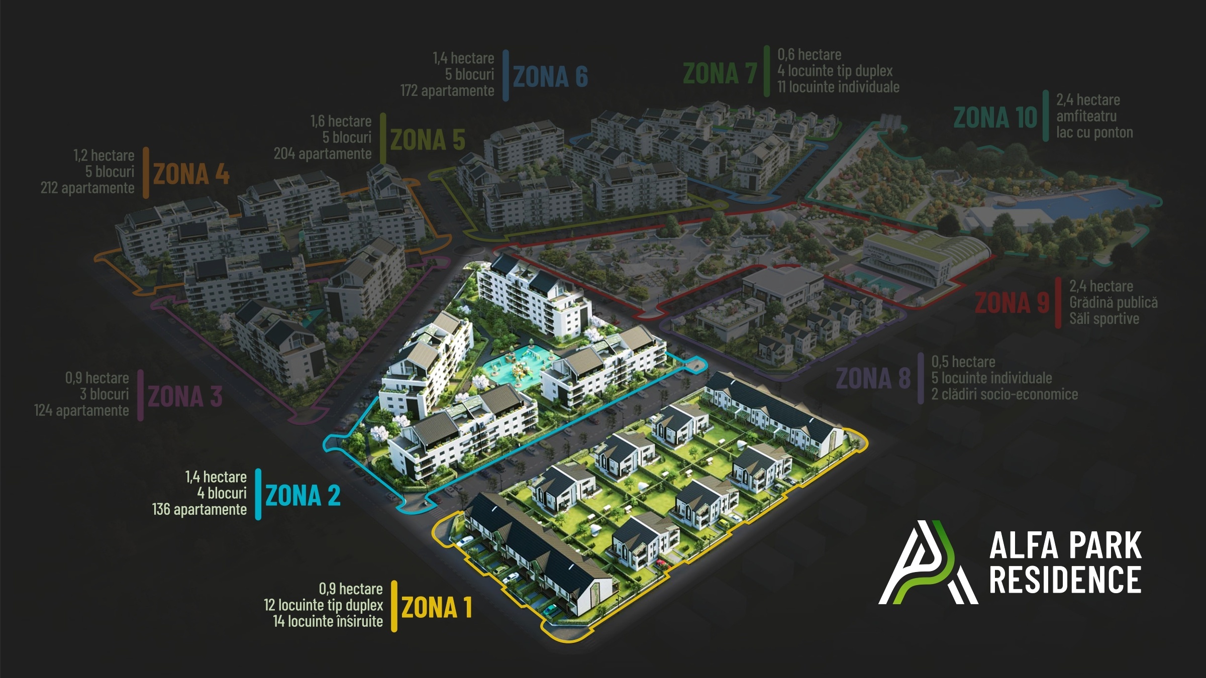 Reamintim, că dezvoltarea ambițiosului proiect se va realiza progresiv, urmând ca, la finalizarea edificării întregului cartier, acesta să fie structurat pe 10 zone rezidențiale, în prima etapă realizându-se primele două zone: