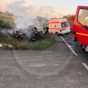 FOTO Accident cu doi morți și trei mașini. O persoană a ars de vie în autoturism