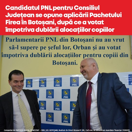 Comunicat PSD: Candidatul PNL pentru Consiliul Județean se opune aplicării Pachetului Firea în Botoșani, după ce a votat împotriva dublării alocațiilor copiilor
