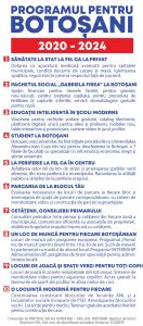 - Un loc de muncă pentru fiecare botoșănean: accesarea programelor europene „Primul loc de muncă pentru tineri între 18 și 30 de ani”, deschiderea de școli de meserii în parteneriat cu mediul de afaceri și Administrație Botoșani, pregătirea de tineri specialiști pentru administrația locală.