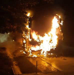 Un autobuz parcat în fața unui atelier de vopsitorie din Frumușica a fost distrus de flăcări. Alarma s-a dat în această dimineață, puțin înainte de ora 04. 00. Autobuzul era parcat de aproximativ două luni, fiind adus pentru a fi vopsit.