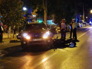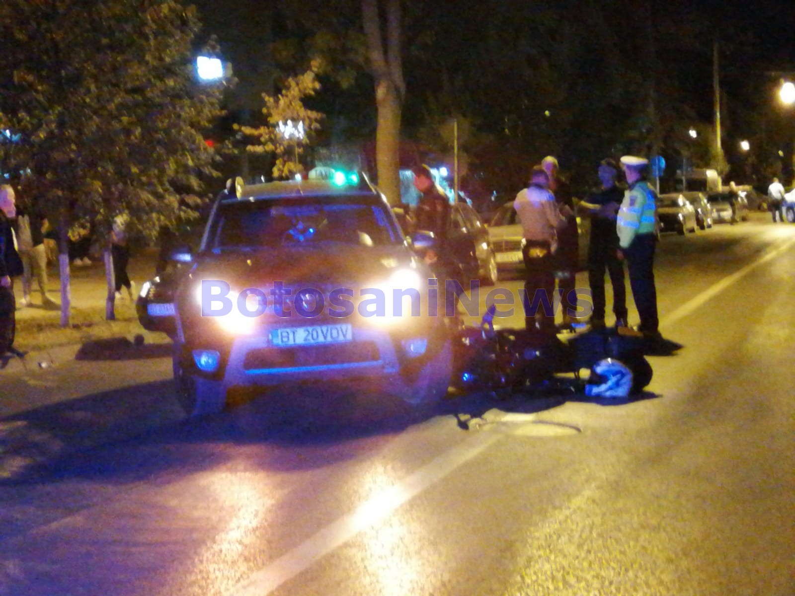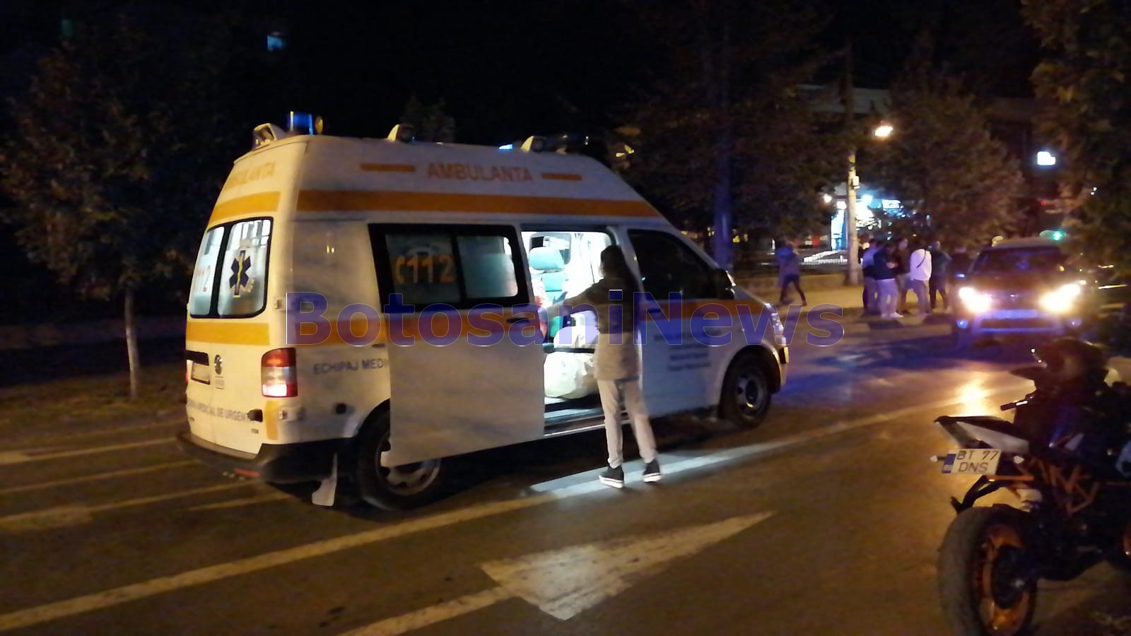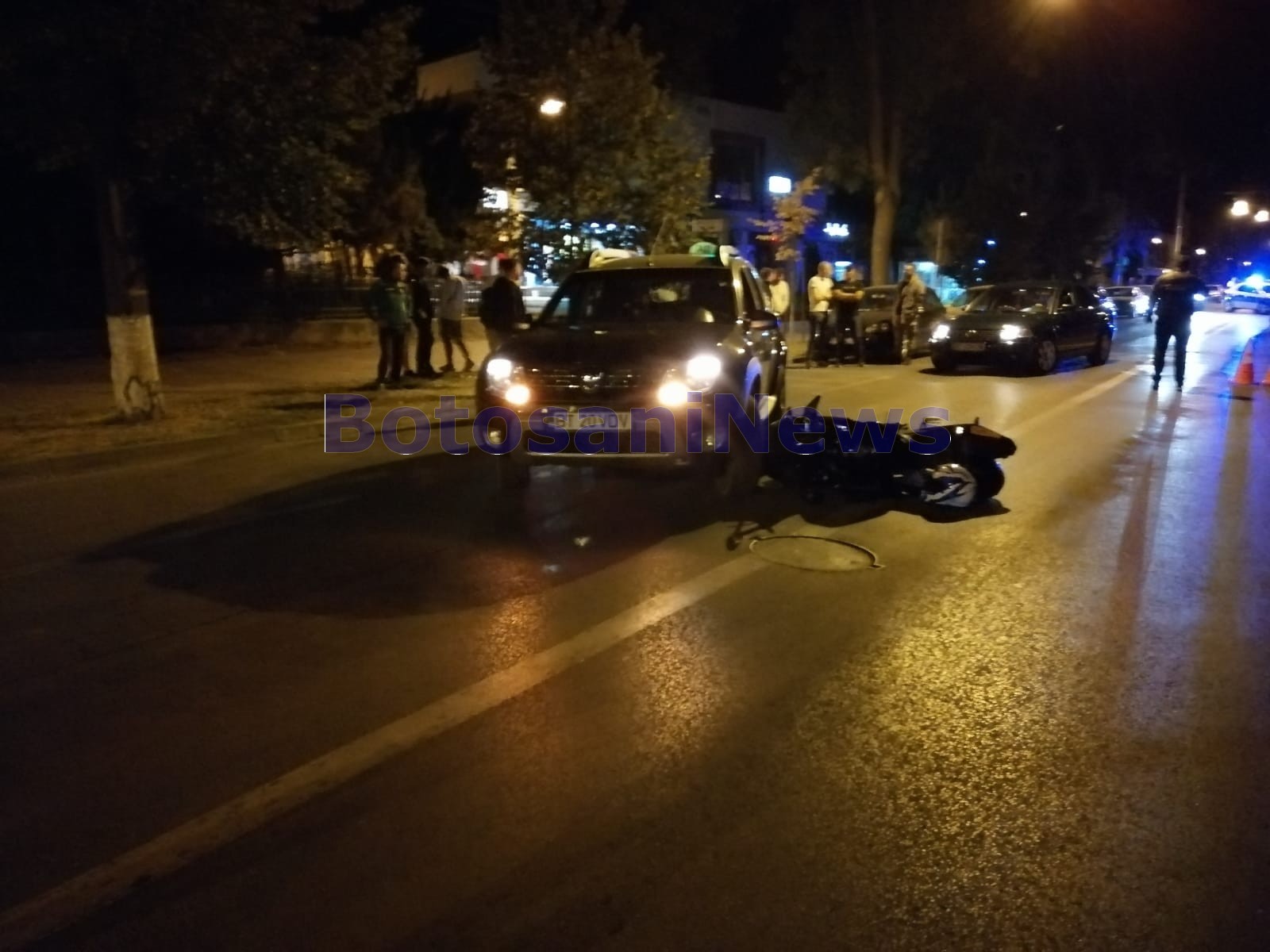 Accident, luni seară, între un autoturism Taxi și o motocicletă, pe Bulevardul ”Mihai Eminescu” din Botoșani, în zona restaurantului La Dolce Vita.