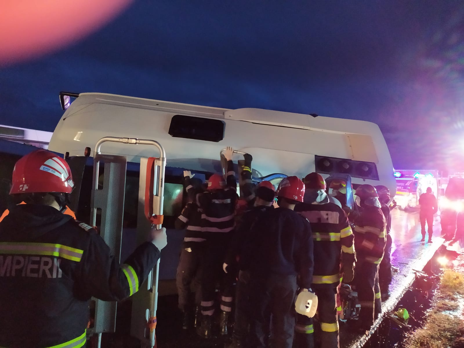 Pentru gestionarea situației au acționat 2 autospeciale de transport victime multiple, 3 echipaje de prim ajutor calificat, 1 ambulanță terapie intensivă mobilă, 1 descarcerare, 1 autospecială de stingere cu modul de descarerare, precum și alte 3 ambulante ale serviciului județean de ambulanță.