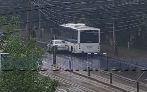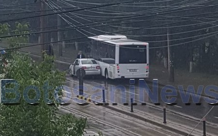 Un accident rutier a avut loc, marți după-amiază, pe fondul precipitațiilor puternice, în zona Industrială din municipiul Botoșani. Un șofer s-a izbit cu mașina într-un autobuz de transport în comun de la Eltrans.