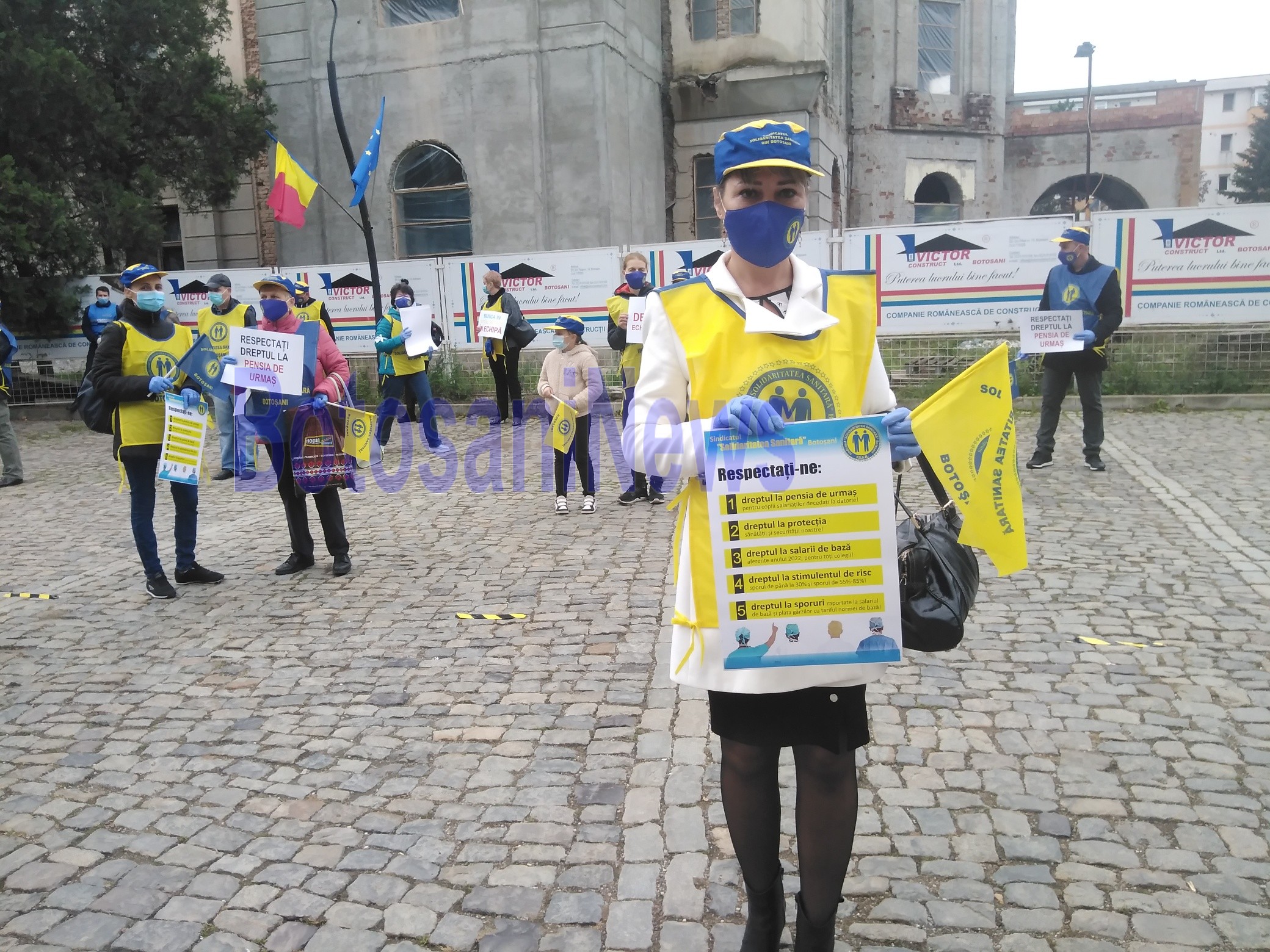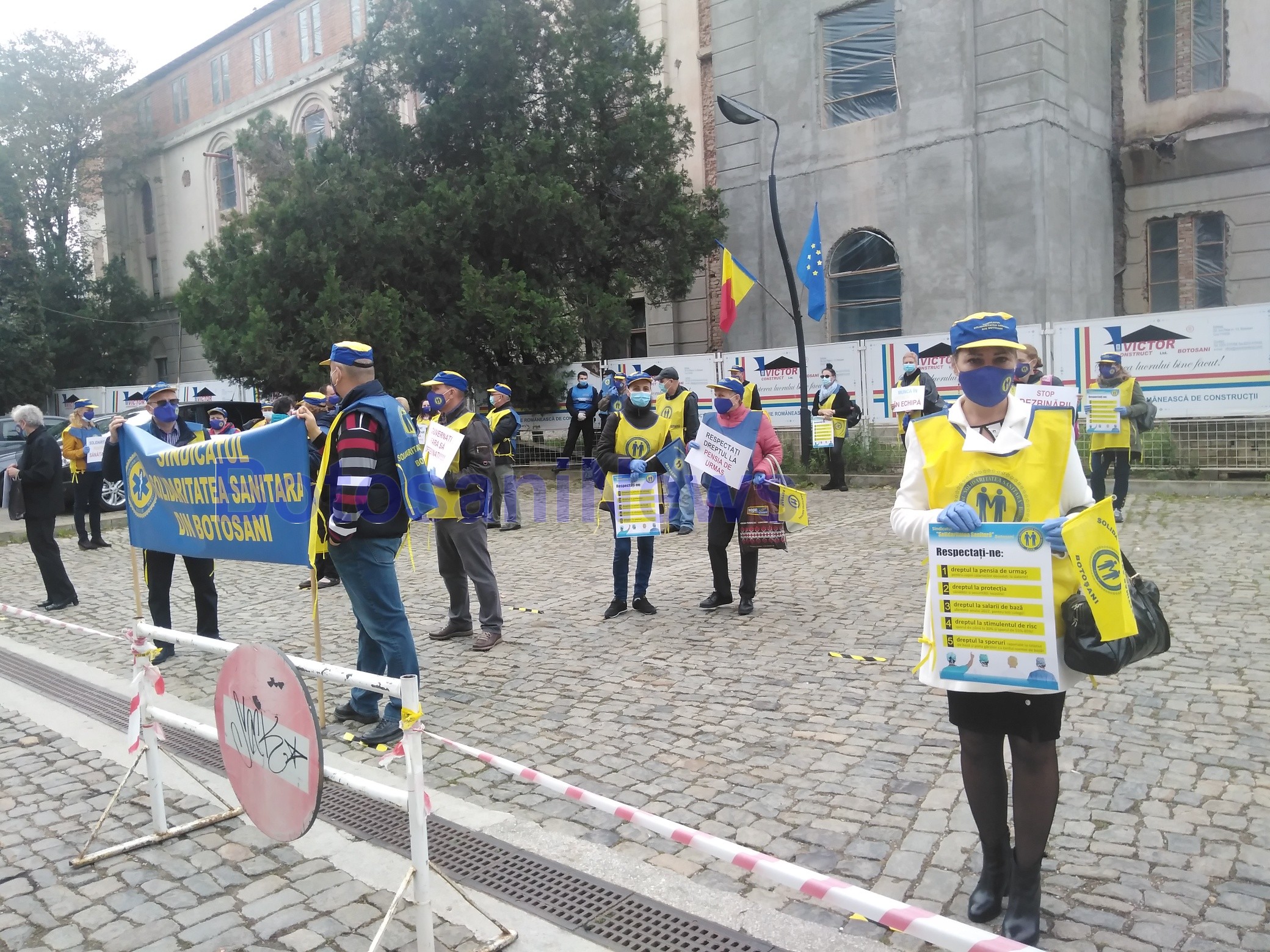 ”Principala revendicare pe care o avem astăzi în fața Instituției Prefectului și Consiliului Județean o reprezintă refuzul guvernanților de a acorda pensia de urmaș pentru copiii colegilor decedați, aflați în lupta împotriva pandemiei COVID 19. La Botoșani avem patru cazuri, un medic și trei asistenți medicali, iar cel mai renumit caz este cel al Lenuței Buta, colega de la Boli Infecțioase decedată în luna mai, iar ultimul caz al colegei de la Pediatrie, Tamara Guluță”, a declarat Daniel Bulboacă, liderul Solidaritatea Sanitară Botoșani.