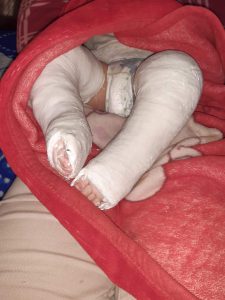„Va rog din suflet deoarece vreau să-mi vad baietelul bine, cum fiecare mama își dorește asta pentru puiul ei, în fiecare saptamana am programare la Iasi pentru ai pune din nou ghips, pentru al opera din nou si pentru ai schimba papuceii…eu sunt din Dorohoi sat si comuna Pomîrla -Botosani si as dori din suflet poate exista si pentru baietelul nostru oameni cu suflet bun care sa ne ajute cu banutii pentru a platii ghipsul deoarece trebuie sal cumparam noi si pentru a platii masina pentru a ne duce si a ne aduce inapoi…..de unde suntem noi pana la Iasi dus si intors facem 11 ore si pentru a plati masina ne costa 350 de lei pe saptamana . Sotul meu munceste cu ziua in constructii dar totusi nu ne ajung banutii . Va rog din suflet vreau să-mi vad copilasu bine. De cand a trebuit să îi pună iar ghips la piciorușe plânge încontinuu, si zi si noapte . Ma doare sufletul să îl văd așa!”, spune mama copilului.