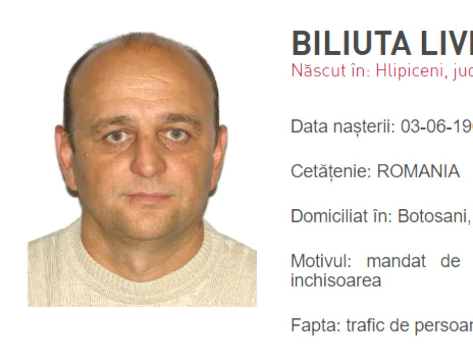 Botoșăneanul Liviu Biliuţă, un bărbat căutat de Poliţia Română din 2008, a fost arestat miercuri, în centrul oraşului Dublin, informează ziarul irlandez Sunday World. Bărbatul de 55 de ani a traficat minore în Amsterdam şi are de executat 5 ani de închisoare.