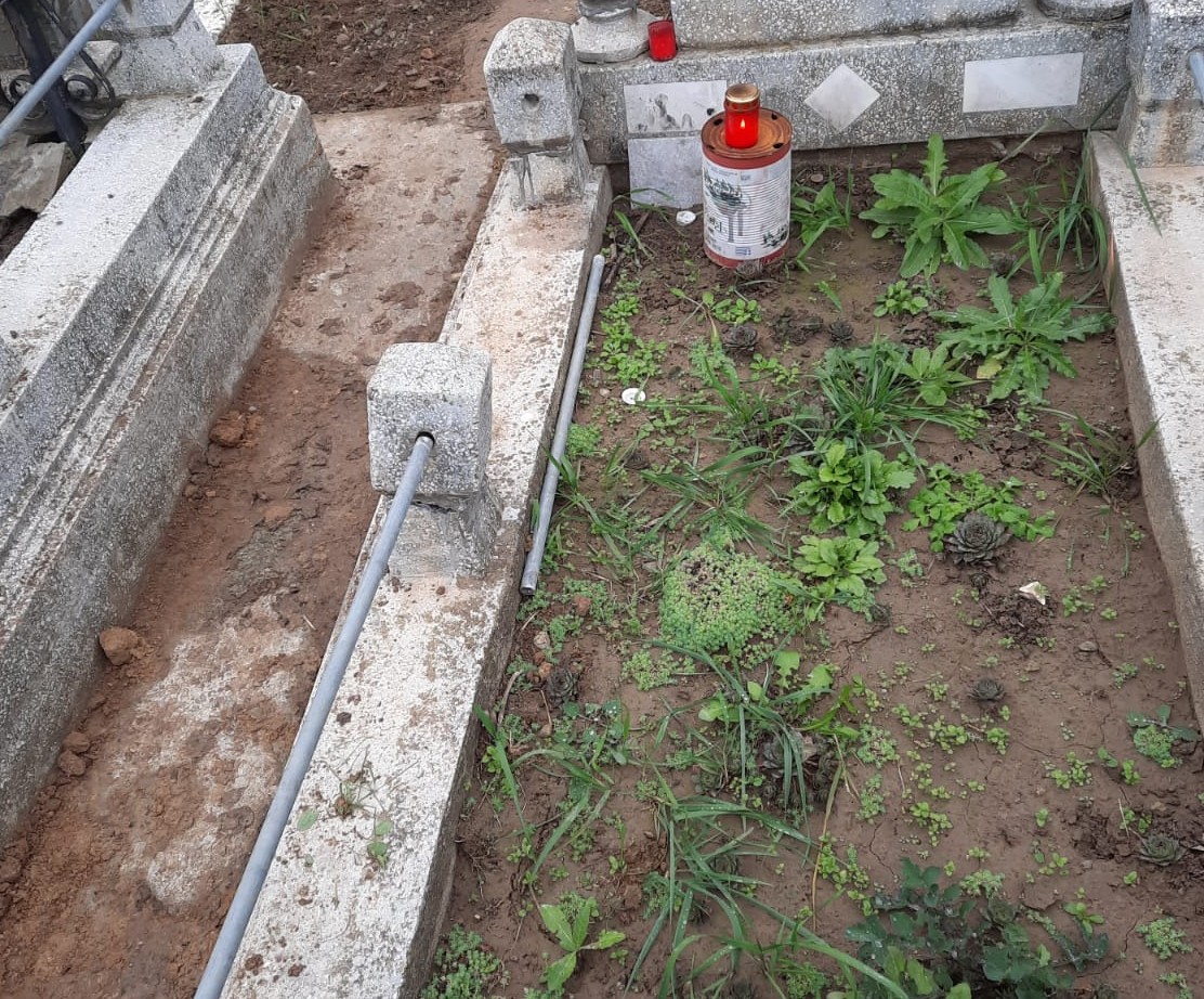 Toată lumea îi indica pe cei care lucrau la cavou în cimitir, însă luați la întrebări, aceștia nu au recunoscut nimic astfel că acum bărbatul este nevoit să scoată din nou bani din buzunar pentru amenajare.