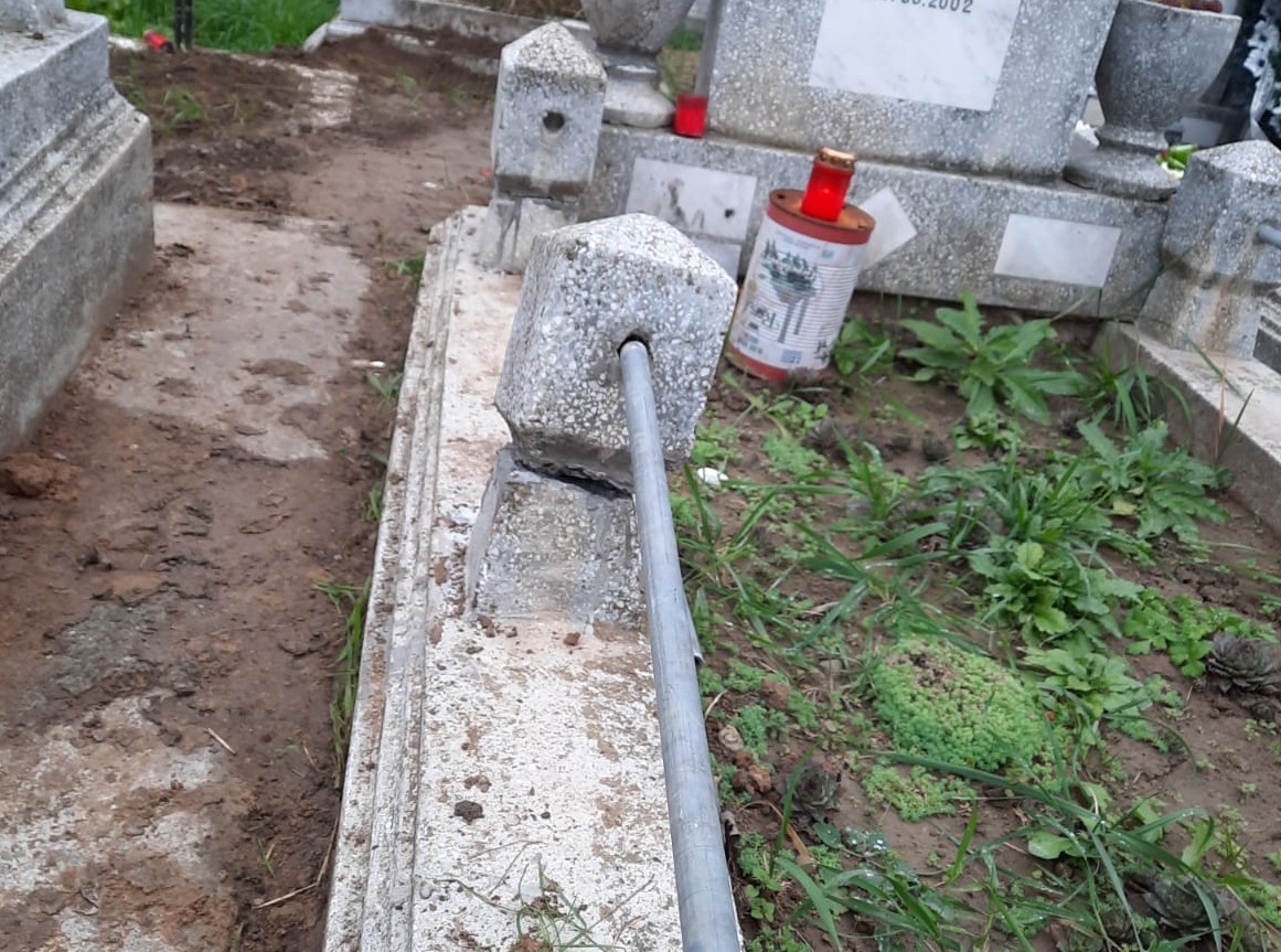 În bătaie de joc! Angajații uneia dintre firmele care realizează cavouri în cimitirul Pacea ar fi distrus stâlpii de la un mormânt, iar apoi s-au făcut că...„plouă”. Un bărbat din Botoșani a mers, duminică, la mormântul tatălui său să aprindă o lumânare, dar totul era în regulă, miercuri însă, când a mers din nou, a observat că stâlpii de la mormânt erau distruși.