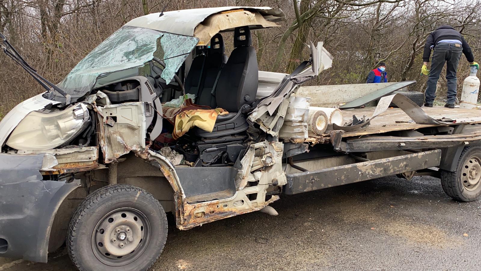Un accident rutier a avut loc, luni, la ieșire din Baisa. Două autovehicule s-au ciocnit violent. Din primele informații, o camionetă care transporta mai multe butelii goale de oxigen a fost distrusă, după ce a lovit laterala unei autoplatforme care circula pe contrasens.