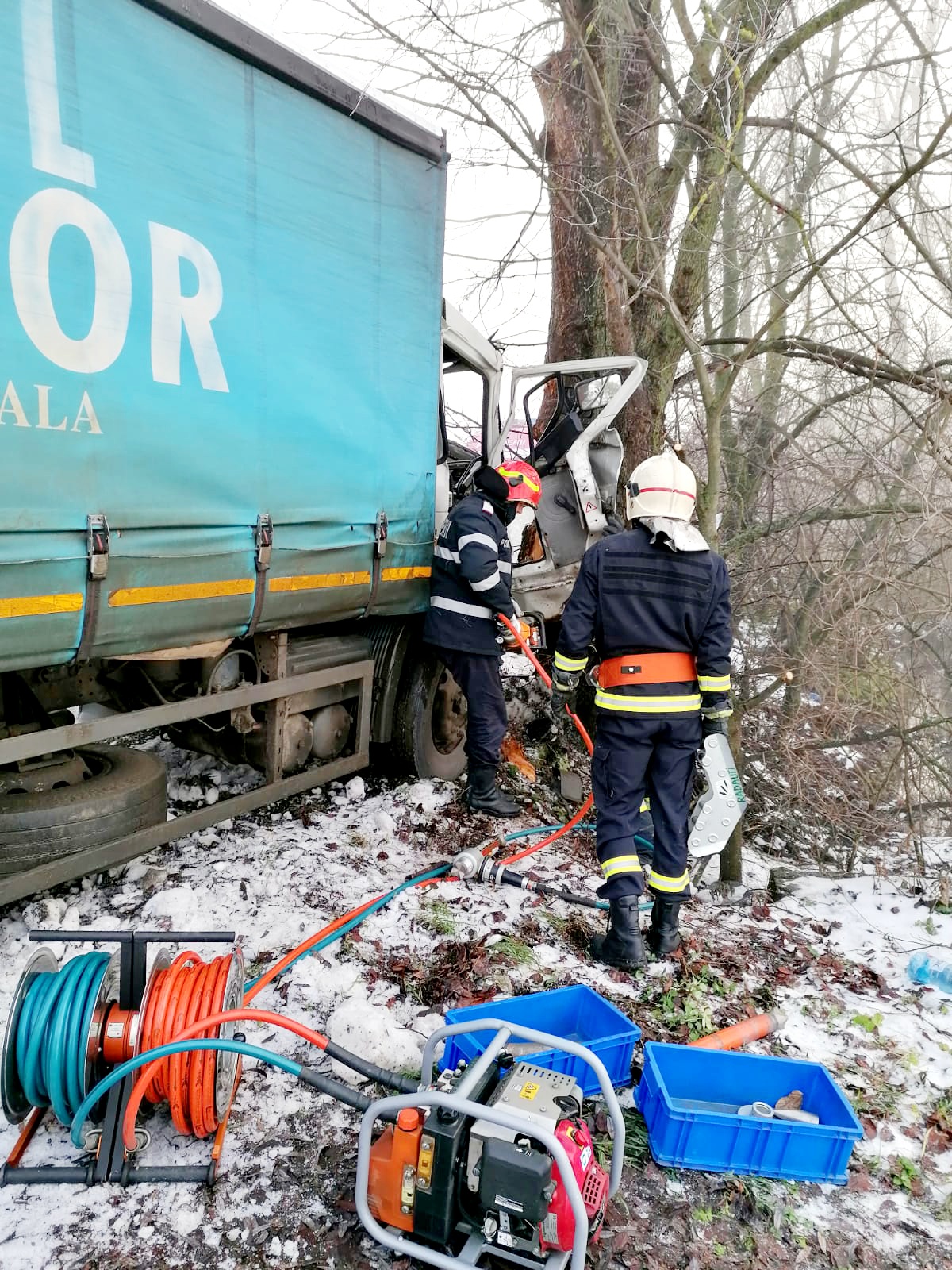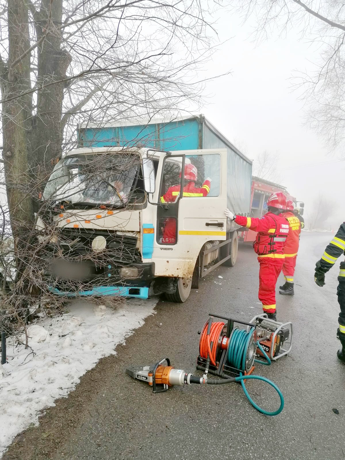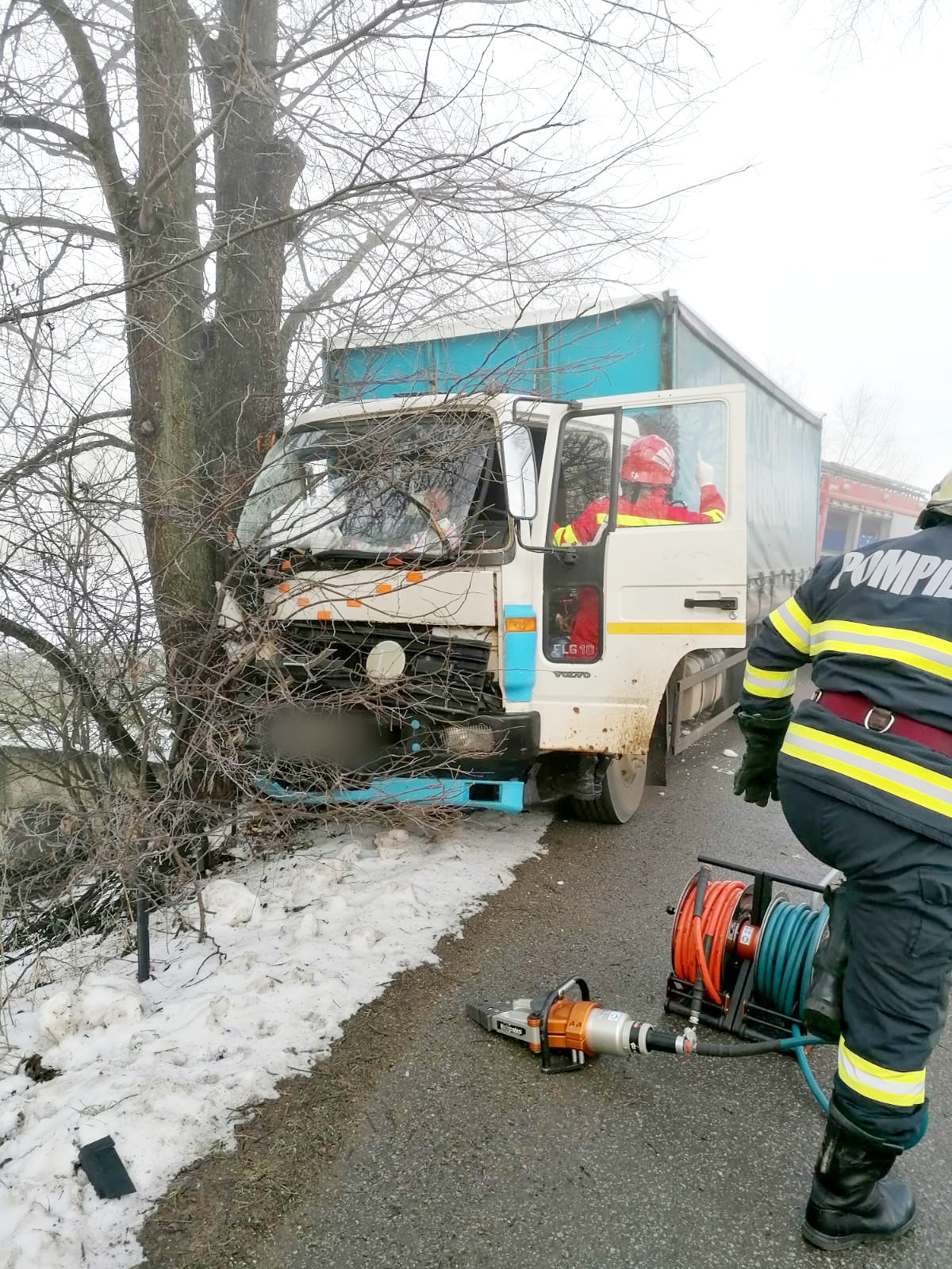 Un accident rutier a avut loc, marți, în localitatea suceveană Horodnic de Jos. Un camion a intrat într-un copac. Pasagerul aflat în dreapta, a rămas încarcerat, cu picioarele prinse sub bord. Șoferul nu a necesitat îngrijiri medicale.