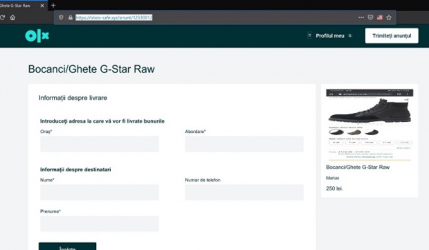 Atacatorii contactează un utilizator care a publicat un anunț de vânzare a unui produs pe OLX, se declară interesați de achiziție, apoi susțin că au efectuat plata. Dar, pentru încasarea sumei corespondente ar fi necesară accesarea unui link și introducerea datelor cardului pe care ar trebui virată suma. Desigur, este vorba despre o capcană, atacatorii sistând orice conversație după ce primesc datele de card, iar victimelor li se extrag bani din cont, avertizează CERT-RO.